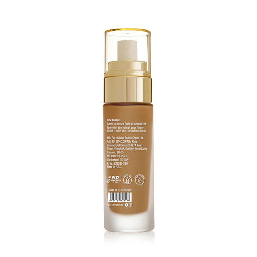 ntroducing Swiss Beauty High Performance Foundation - the ultimate solution for achieving that perfect base. Crafted with a featherlight formula, this foundation delivers a poreless, dewy skin-like finish that feels smooth and flawless. Enriched with powerful skincare actives like Vitamin C and Niacinamide, this water-resistant foundation melts into your skin, soothes it, and promotes healthy skin growth for a perfect crease-free canvas to apply makeup.