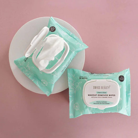 Swiss Beauty Clean & Glow Makeup Remover Wipes contains 30 pieces of ultra-soft wipes to clean and refresh your skin with the goodness of green tea and calendula extracts. These wipes come in a resealable pack for effortless use. These are exclusively easy-to-use face wipes that clean, hydrate and maintains your skin moisture balance. It is also safe for use on sensitive skin as it contains calendula extracts that have a special healing formulation that soothes inflammation and controls acne breakouts.